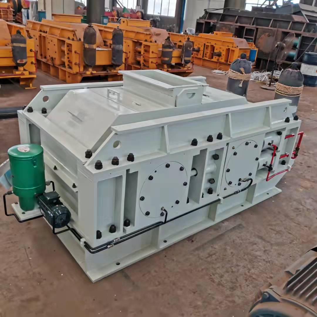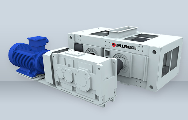 該機工作原理與輥壓機相近,采用了料層擠壓破碎的理念,其主體是由一對相互平行、水平安裝的圓柱形輥子組成,分別由兩套彼此獨立的動力裝置驅(qū)動。當這對輥子做相向運轉(zhuǎn)時,進入喂料口的物料受到輥子的擠壓、沖擊、磨削而細碎,并隨自身重力被旋轉(zhuǎn)的輥子甩出,向下卸落。