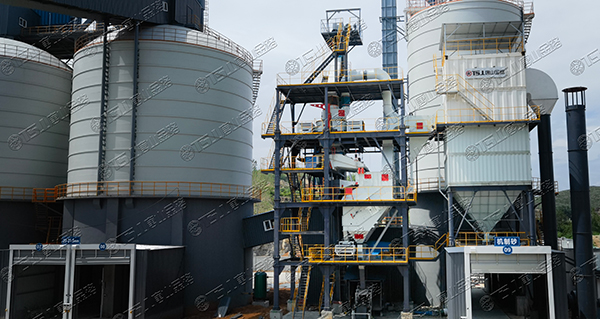 原料經(jīng)過電子秤進入到皮帶輸送機中,由全封閉的提升機將物料入到五孔碾磨制砂機內(nèi)進行破碎處理,再由空氣篩對破碎后的物料進行篩分、選粉處理,篩分后的較大物料會返回五孔碾磨制砂機中進行二次破碎,符合要求的砂子則由傳送帶輸送至成品倉中;篩分過程中的粉塵會經(jīng)粗細粉分離機進入到布袋收塵器內(nèi),而其中較大的粗顆粒會在粗細粉分離機的作用下,按需求在成品砂中進行回摻,細粉塵將通過風(fēng)力進入到布袋收塵器,作為副產(chǎn)品進行使用。