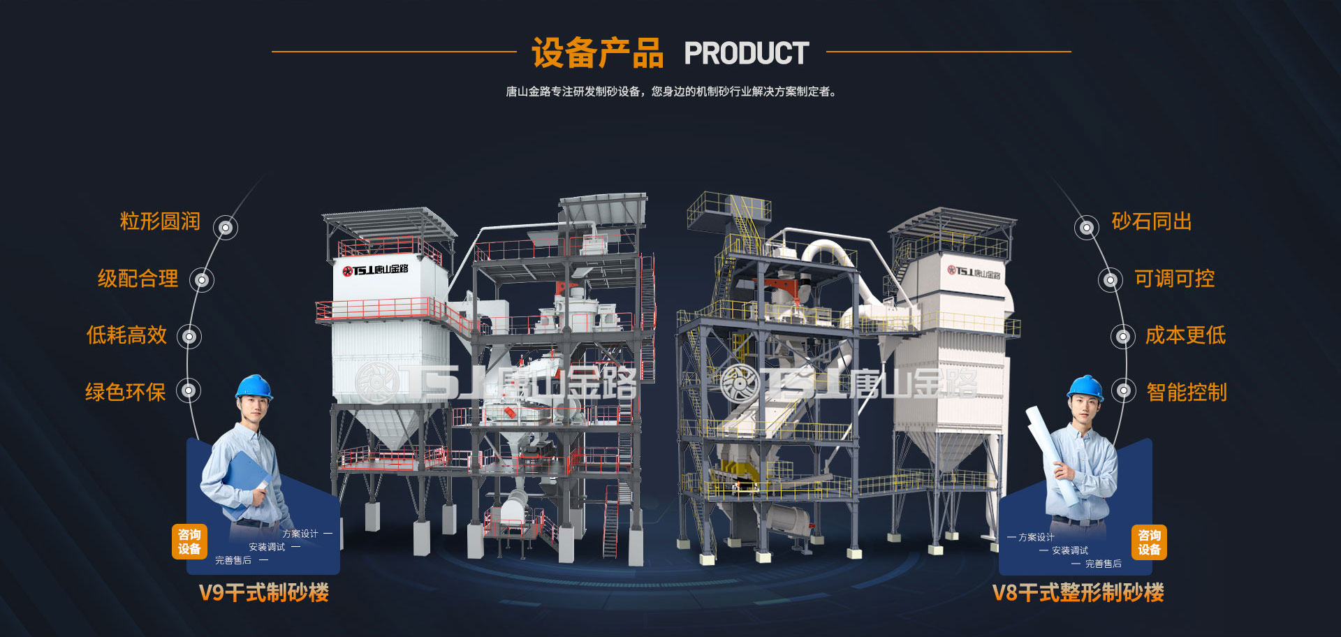 唐山金路作為一家集研發(fā)、生產(chǎn)、銷售、服務(wù)于一體的制砂機(jī)械設(shè)備企業(yè),一直致力于環(huán)保型破碎制砂設(shè)備的研發(fā)與生產(chǎn),現(xiàn)建有年產(chǎn)100萬噸的機(jī)制砂生產(chǎn)實踐基地。公司自主研發(fā)的V8干式整形制砂樓、V9干式制砂樓,具有綠色環(huán)保、能耗低產(chǎn)量高、智能控制等特點,產(chǎn)出的機(jī)制砂級配合理、粒形圓潤,是制砂生產(chǎn)企業(yè)的理想產(chǎn)品。